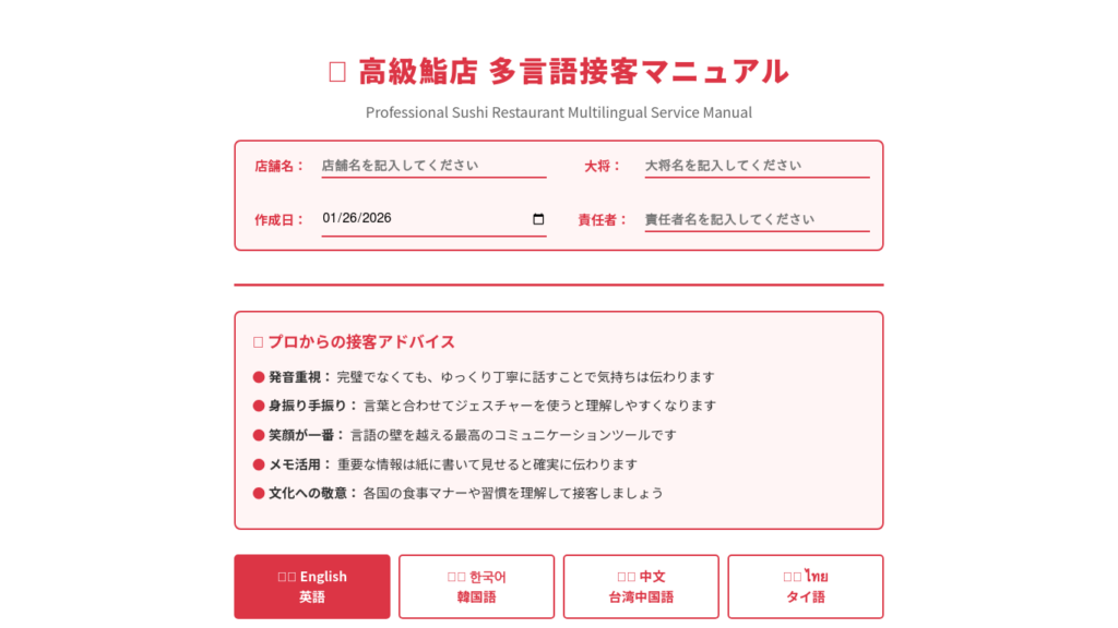入力式:調理・在庫・社員マニュアル・管理システム等